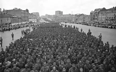 Parade deutscher Kriegsgefangener in den Straßen Moskaus, 1944.H