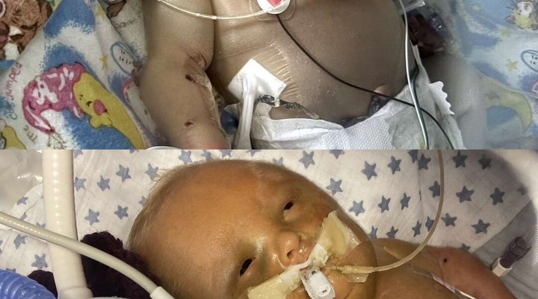 Frankie’s diagnosis is as rare as it is devastating. He has microdeletion syndrome, meaning parts of two of his chromosomes are missing—an exact combination so rare that doctors believe he is the only baby in the world with these specific deletions. This genetic condition has led to a cascade of life-threatening complications: heart failure, a severe grade-four brain bleed causing brain damage, internal bleeding, multiple organ failure, a rare insulin disorder, seizures, severe muscle spasms, and the need for more than ten blood transfusions.