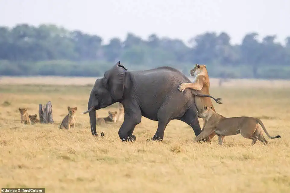 Hidden among the herd was a baby elephant — barely a few months old, its small trunk swaying as it stayed close to its mother’s legs. The matriarch froze, her ears flaring wide. In her eyes, there was no beauty in the moment — only threat. The humans, with their strange scent and foreign shapes, had crossed an invisible line.