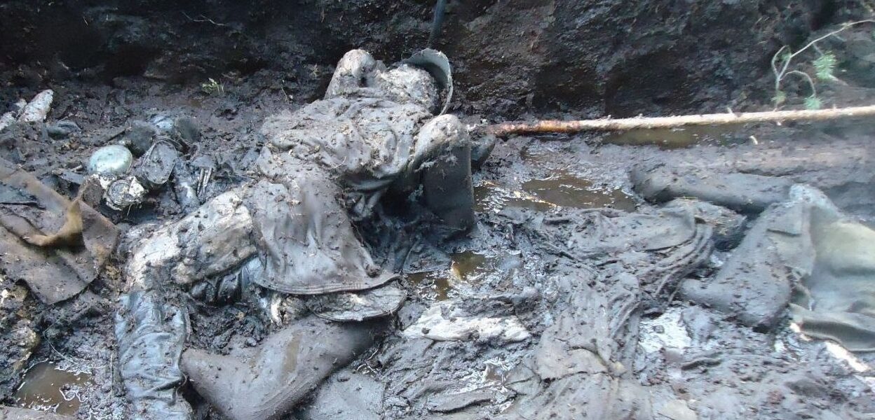 Besonders erschütternd war die Lage der Skelette. Sie lagen ungeordnet, teilweise übereinander, was darauf hindeutet, dass die Bestattung hastig durchgeführt wurde. Wahrscheinlich blieb den Kameraden kaum Zeit – der Krieg rückte weiter, die Front bewegte sich schnell, und der Tod war allgegenwärtig. Die Erde wurde zur letzten Zuflucht, ohne Zeremonie, ohne Abschied.
