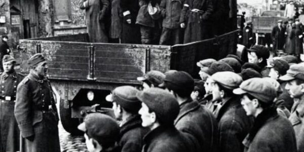 Warschau 1942 – Deportation aus dem Ghetto: Seltene historische Aufnahme eines jüdischen Transports während des Zweiten Weltkriegs.H