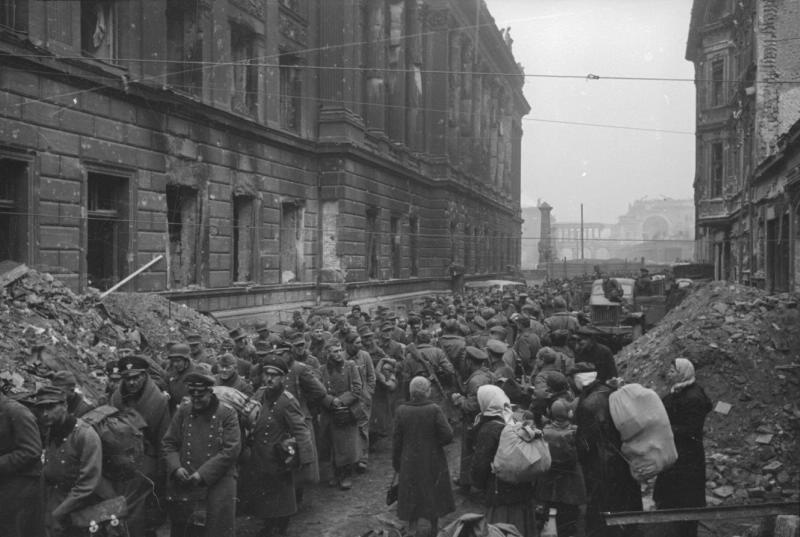 Ein Berg von Leichen wartet nach der Bombardierung Dresdens 1945 auf ihre Einäscherung.H