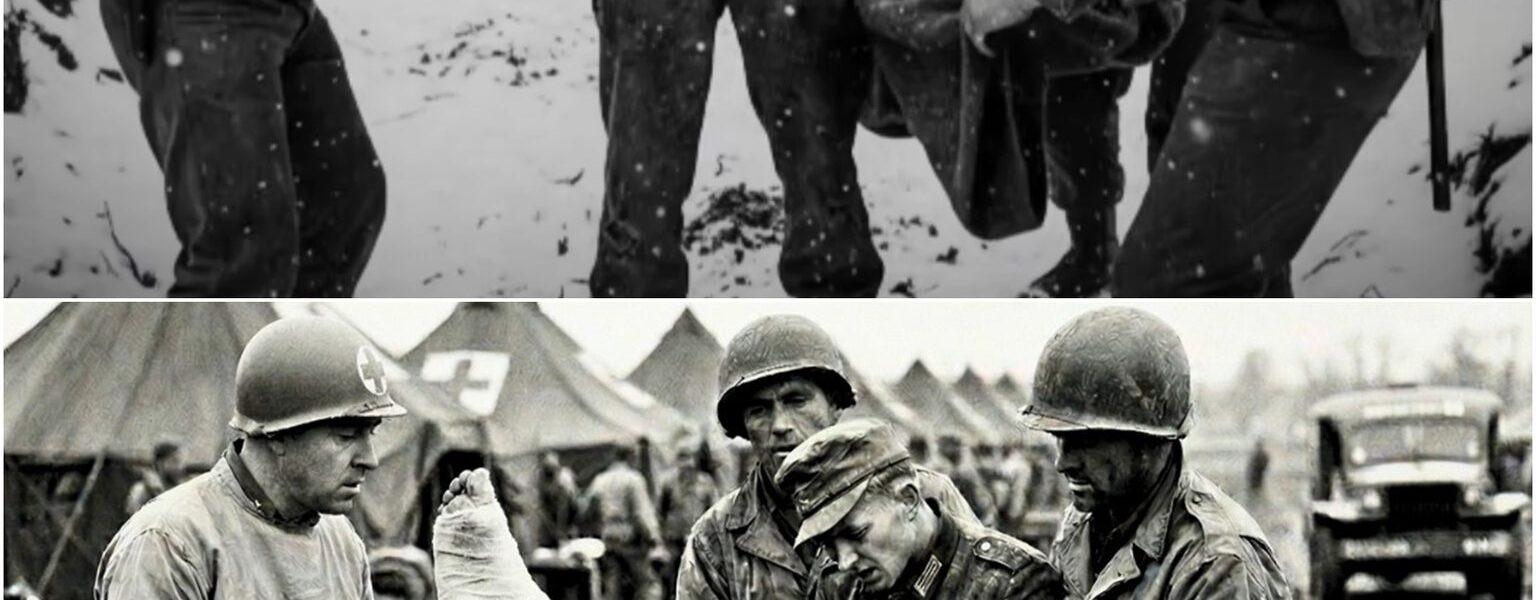 A 17-year-old German prisoner of war named Frederic collapsed under the intense heat in the dusty courtyard of a U.S. intake camp. His left leg, already crushed by the weight of a falling wall in Europe, was dragging behind him like a dead weight. But what happened next stunned everyone—especially the American trauma surgeon who had never seen such an extraordinary display of pain, fear, and resilience.